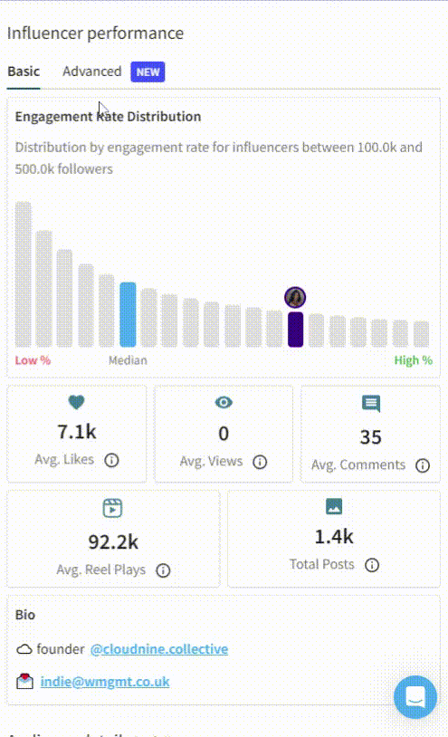 Majorité Outils d’analyse d’influenceursy compris Modeshsont capables de Vérifiez les faux abonnés et Vérifiez la démographie publique. Voyez à quoi cela ressemble dans MODESH:
